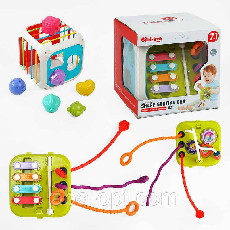 Логічний куб 688-74 (36) 7в1, 2 види, ксилофон, шнурочки, шестерні, пальчикова гра, сортер, в коробці